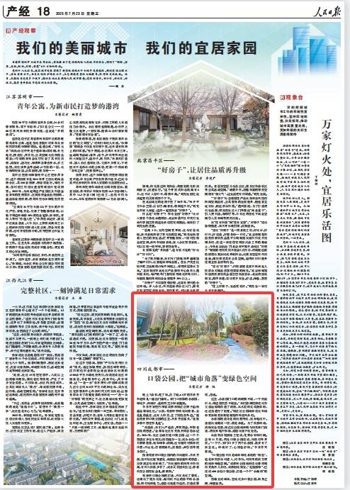 “口袋公园不仅是城市绿地系统的‘细胞’,也是市民群众可进入、可参与、可使用的最方便的城市绿色空间。”成都市公园城市建设管理局相关负责人介绍,成都因地制宜、“见缝插绿”,已建成600余处口袋公园,打造一个个“小而精”的空间。