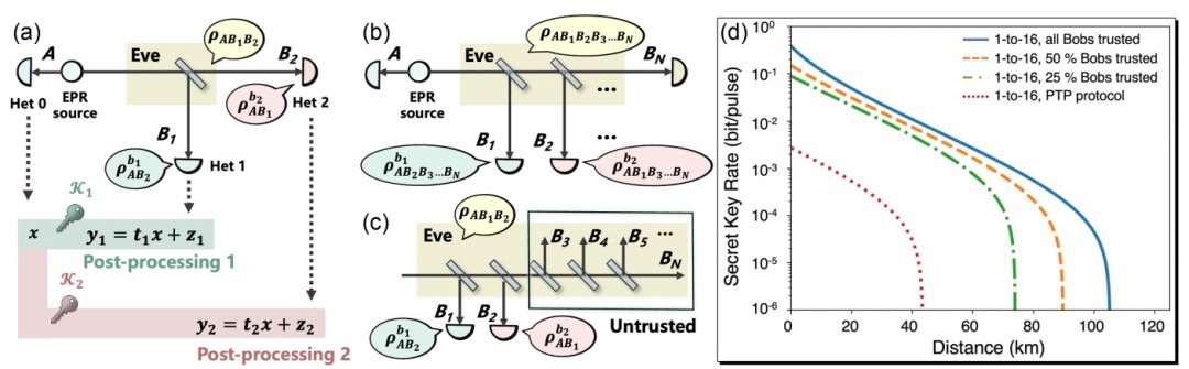 要打破“一对一”瓶颈,在理论方法上,研究人员将突破口放在研发适用于“一对多”场景的高效量子密钥分发协议上。