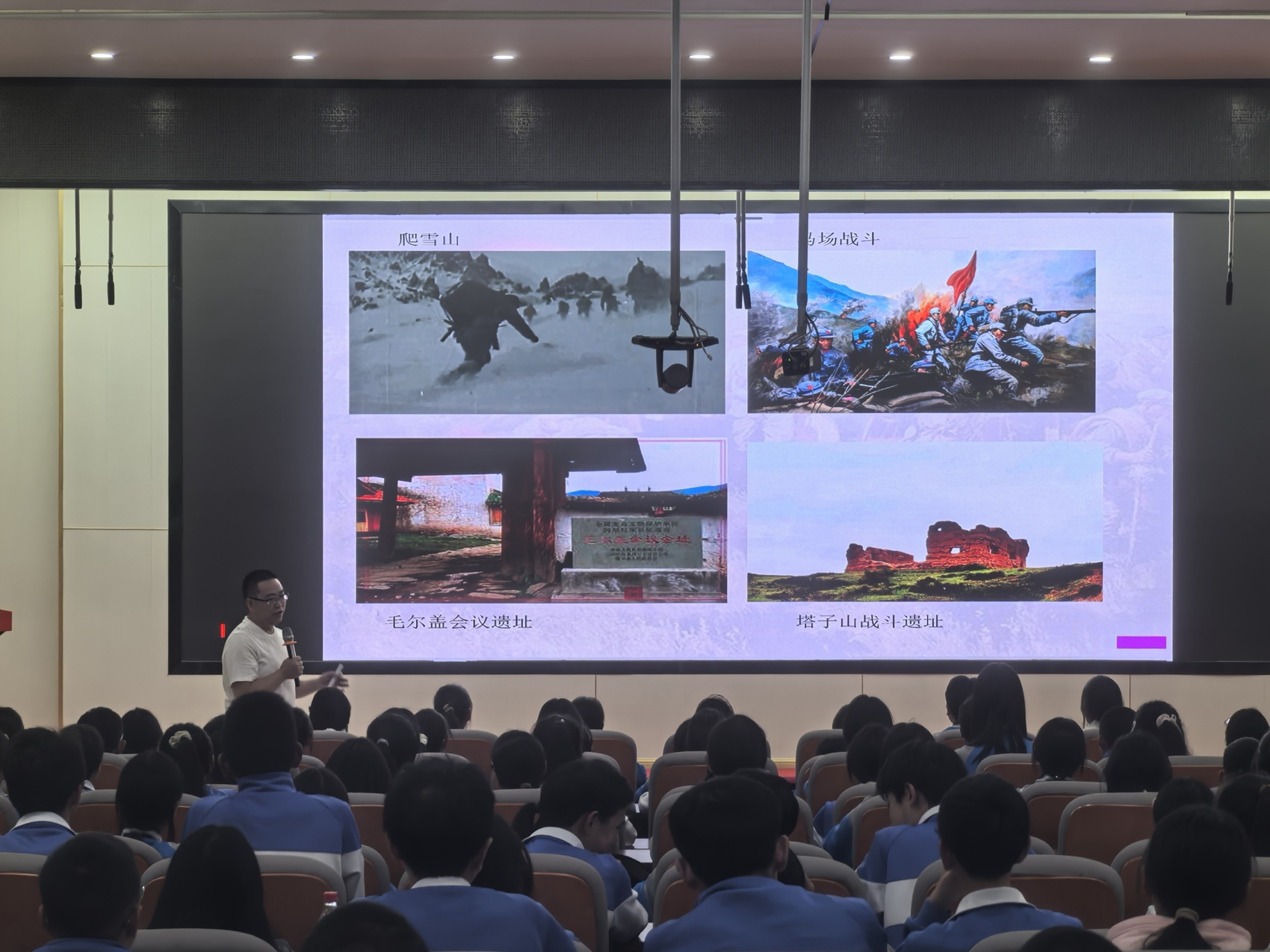 松潘县中学学生上《传承红色基因》思政课。 王攀 摄