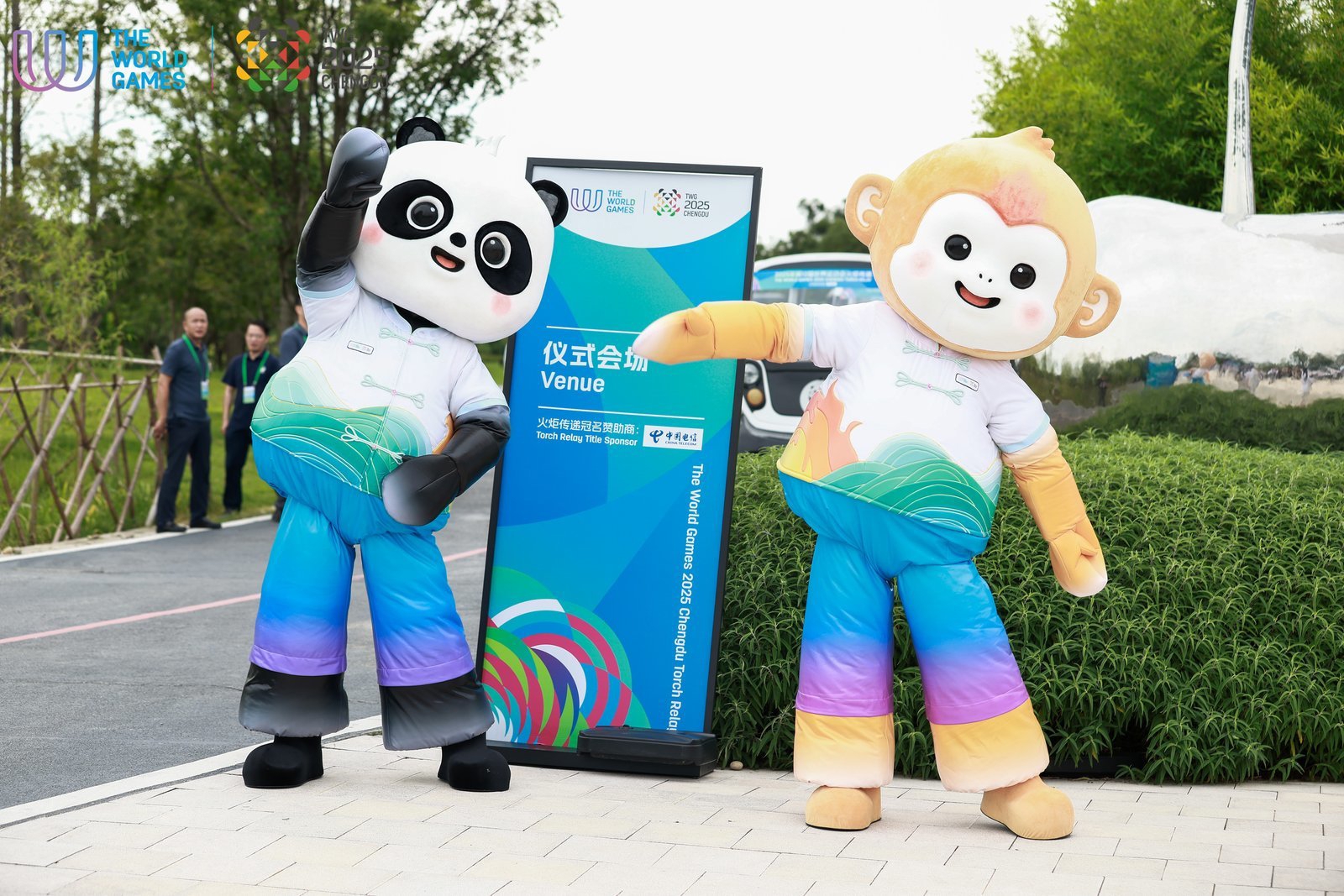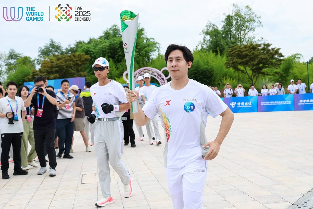 经过三星堆、金沙遗址传递,7月26日中午,2025年第12届世界运动会(以下简称:成都世运会)“竹梦”火炬传递至第三站——成都大熊猫繁育研究基地。