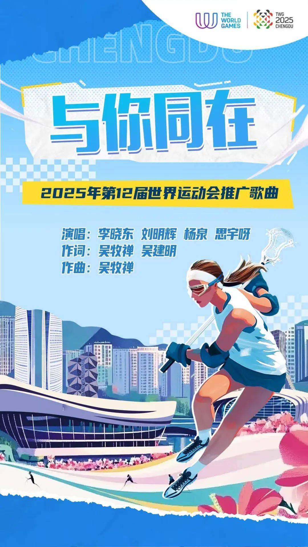 歌曲由成都籍全能音乐人吴牧禅创作、制作。“与你同在”,将成都的包容与乐观进行了诠释,是信念也是力量。坚定大气的旋律、强烈如心跳的节拍,召唤着同行者携手并肩、共赴未来,也鼓舞着每一位参赛者和观众:以手相递、以心相待,平凡的梦亦能得到非凡的记载。歌曲唱出了世运赛场并肩追梦的力量感,更让这份团结的情感,跨越语言与文化,回响在每一个“与你同在”的瞬间。