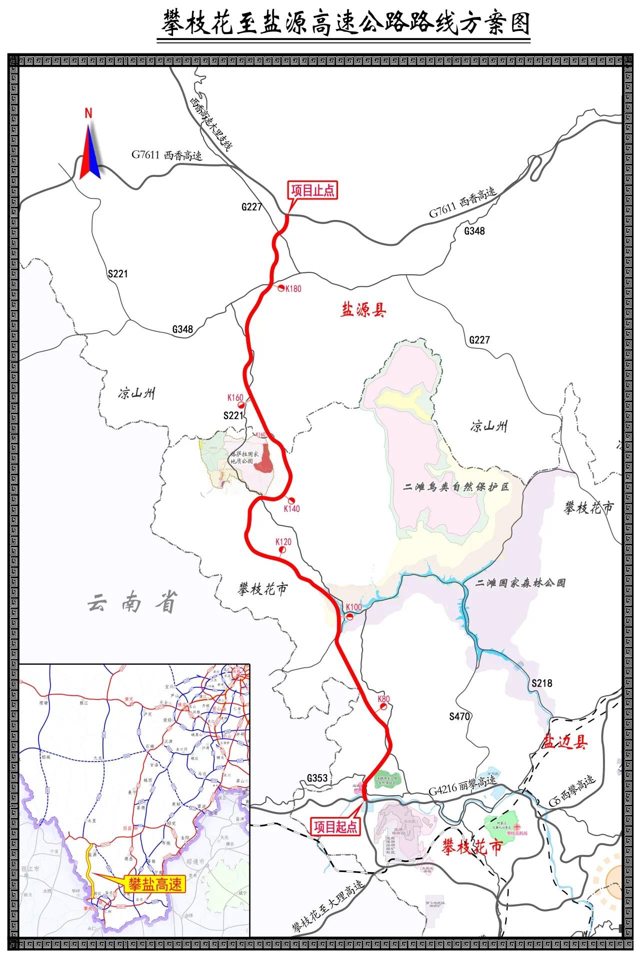 项目起于攀枝花市仁和区太平乡,接已建的G4216丽江至攀枝花高速公路,经攀枝花市西区、仁和区、盐边县,止于盐源县棉桠镇,接在建的G7611西昌至香格里拉高速公路。