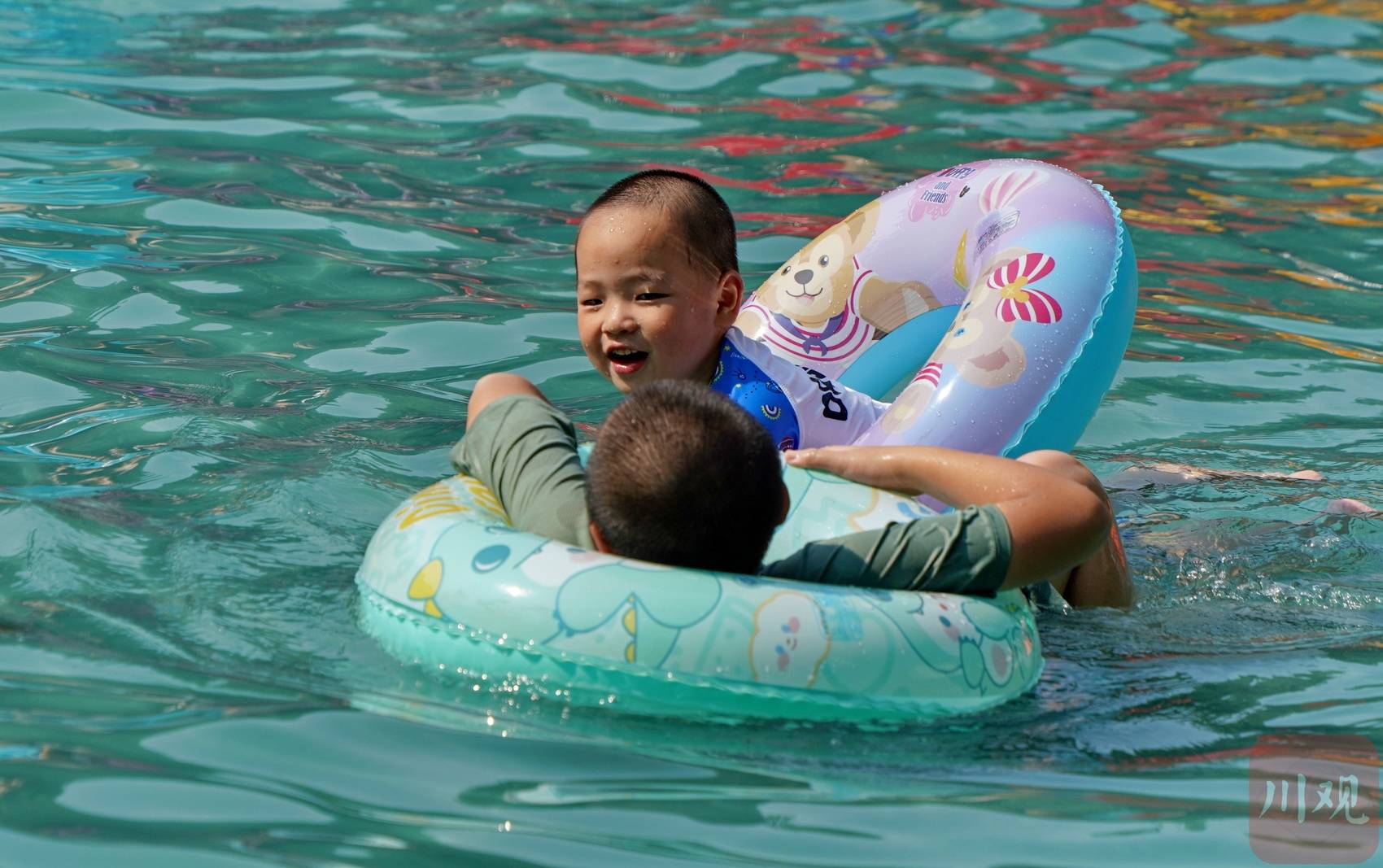 2025年8月3日,游客在成都市双流区黄龙溪镇欢乐田园戏水纳凉。