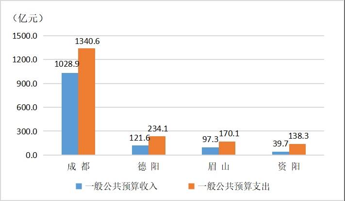 财政收支方面,上半年,成都都市圈一般公共预算收入1287.5亿元。其中,成都市一般公共预算收入1028.9亿元,占都市圈比重为79.9%;德阳市、眉山市、资阳市一般公共预算收入分别为121.6亿元、97.3亿元、39.7亿元。