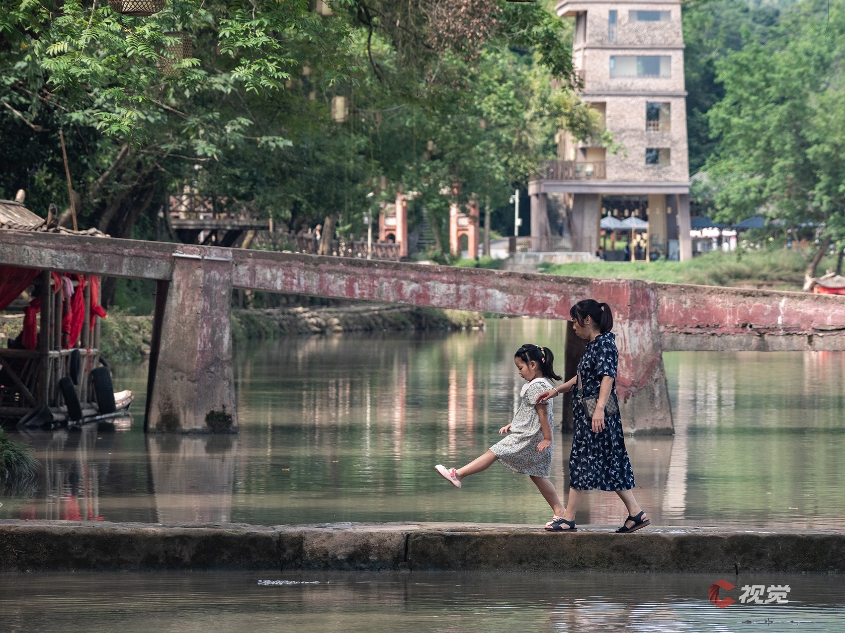 一对母女走过邛崃夹关古镇的石桥。C视觉签约摄影师 张雷