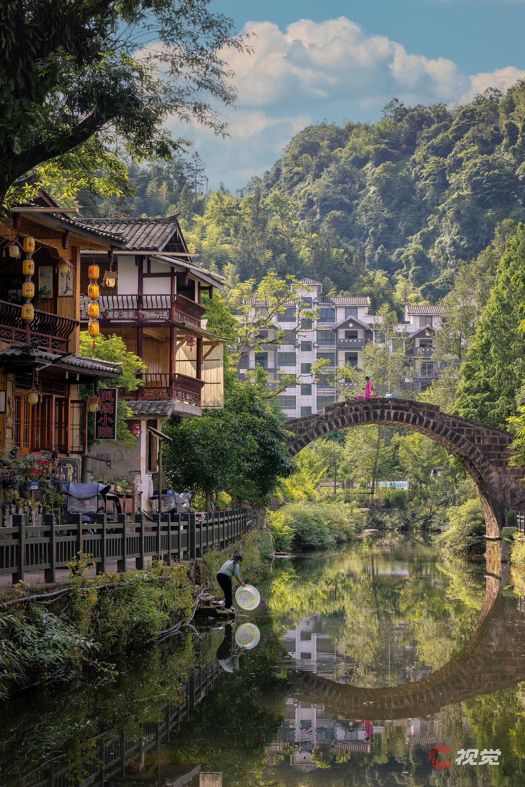 雅安上里古镇,绿意与拱桥倒映在水面上,意境幽然。C视觉签约摄影师 沈军