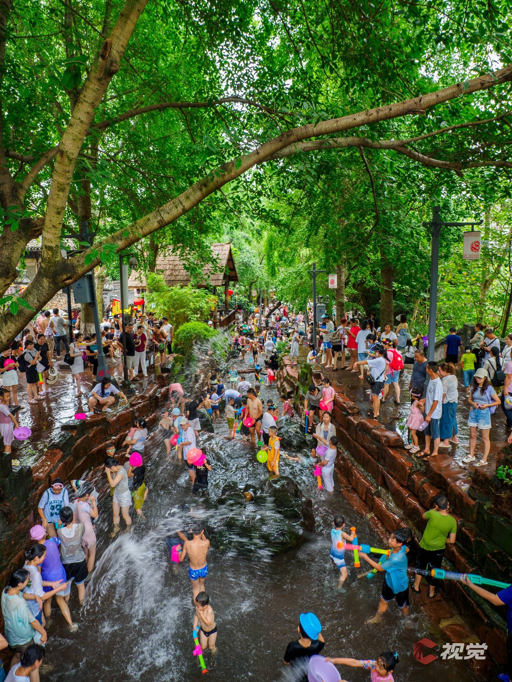 成都双流黄龙溪古镇,许多游客在尽情玩水消暑。C视觉签约摄影师 刘耀飞