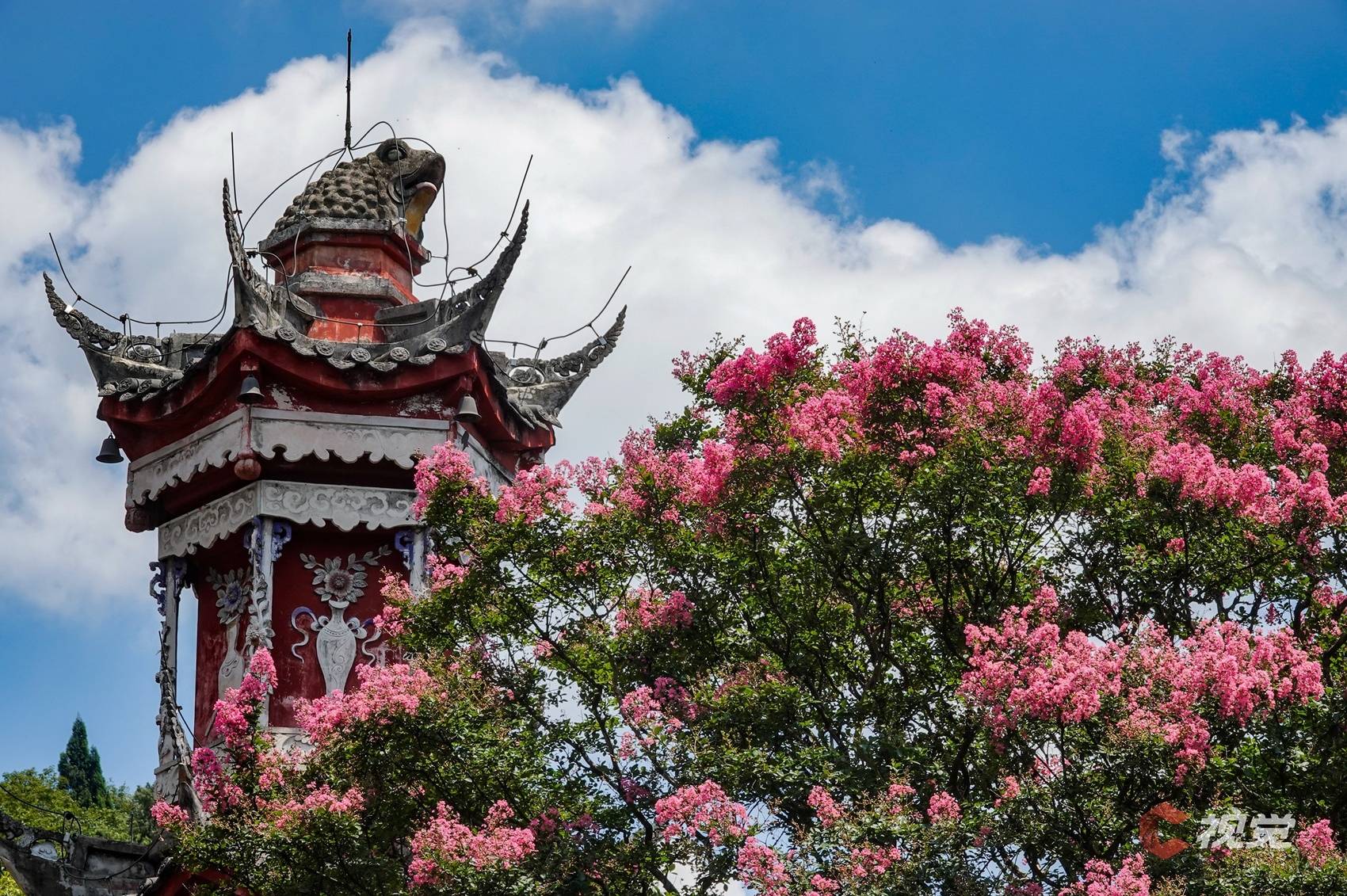 绵阳平武报恩寺紫薇花正值盛放期,红墙黛瓦,禅意盎然。C视觉签约摄影师 滕建新