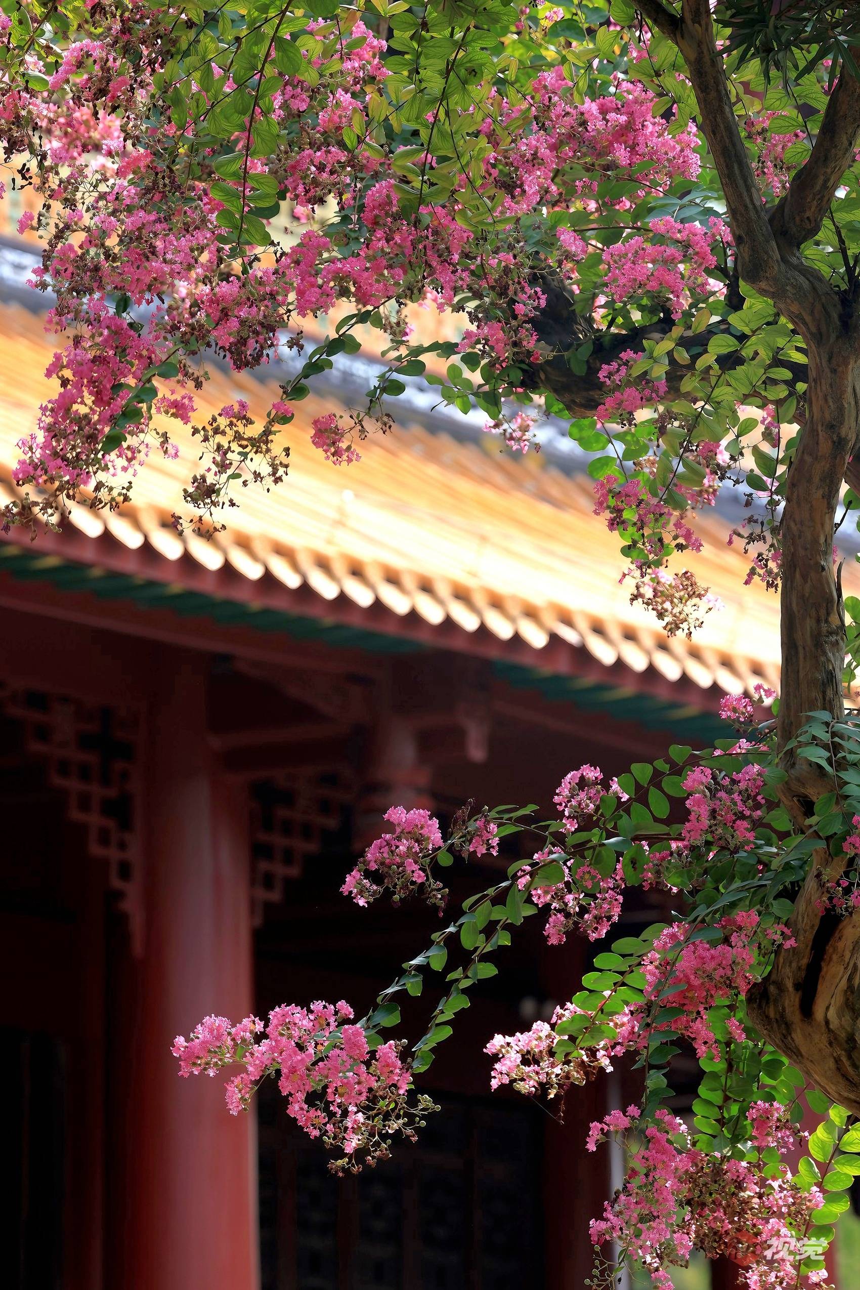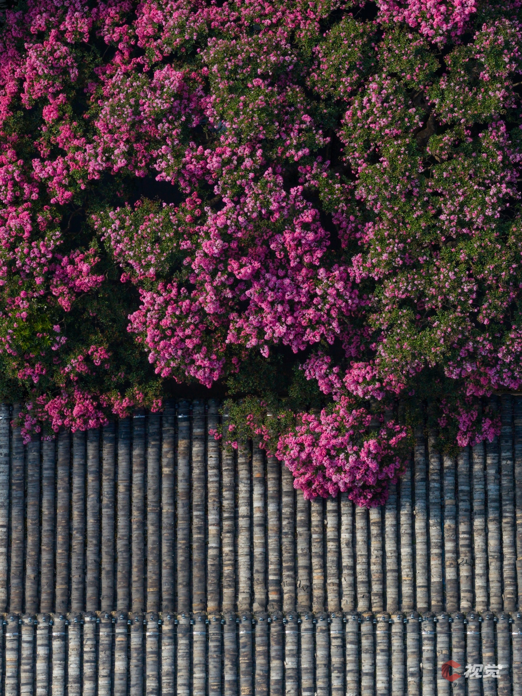绵阳平武报恩寺紫薇花正值盛放期,红墙黛瓦,禅意盎然。C视觉签约摄影师 胡宇