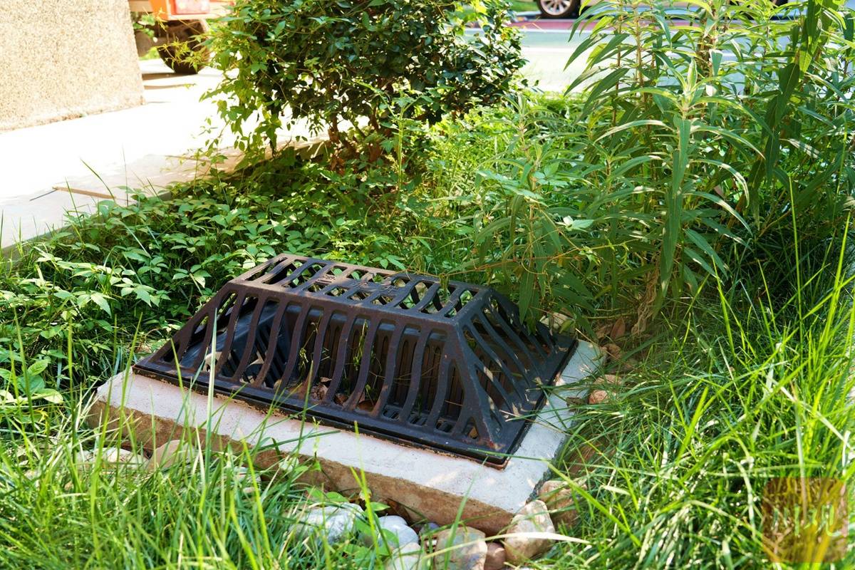 玖合苑雨水花园里的排水装置。袁茹莉 摄