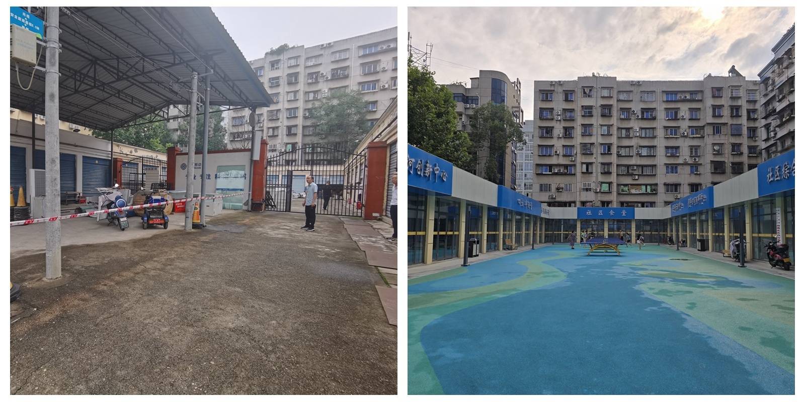 玖合苑(左:改造前)新增社区食堂和社区公共服务中心(右)。受访者供图