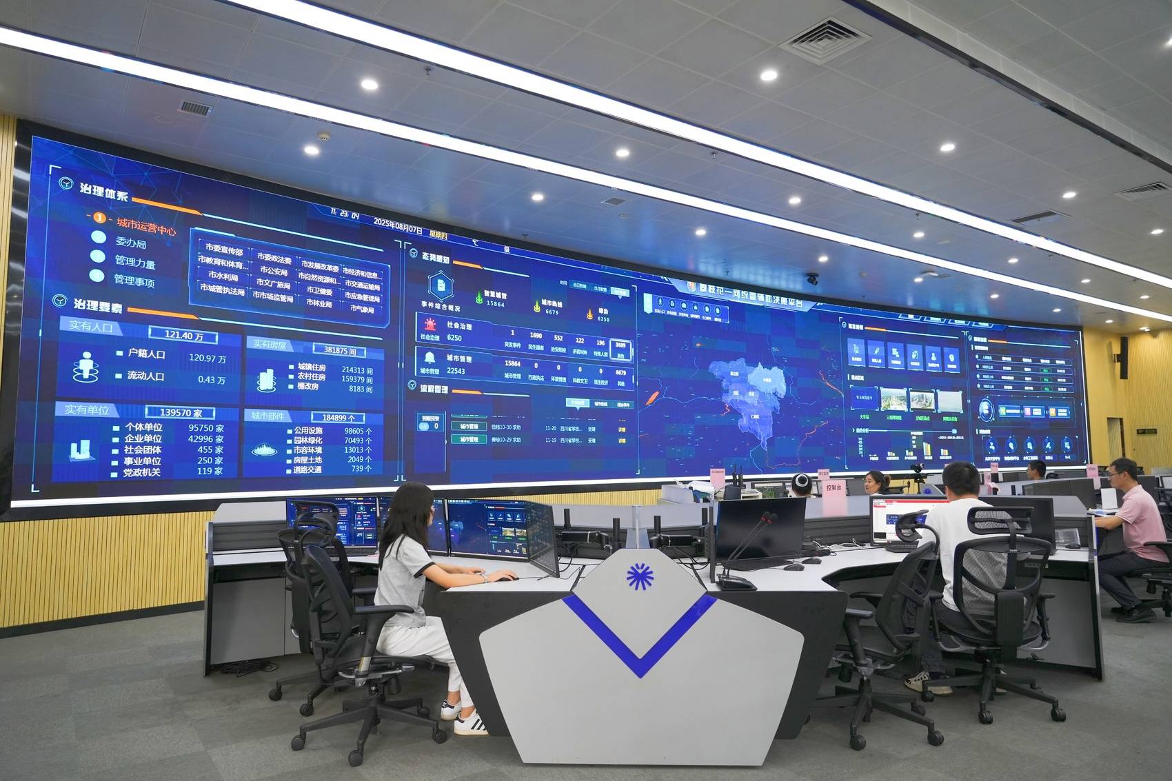 当地建起综治中心、城市综合运营管理中心、应急指挥联动中心“三中心合一”的智慧城市运营中心,打破“行政、机制、技术、区域、部门、行业”六大界限,汇聚266个部门单位及客运、水电等社会资源,数据总量4.4亿余条。