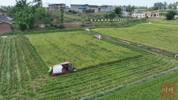 陈鑫是内蒙古中孚明丰农业科技有限公司(下称中孚明丰)自贡项目部负责人,管理该公司在凤仪村周边流转的2000余亩农田。8月1日起,这些田块的水稻陆续开镰,是今年全省水稻最早开镰的区域之一,被称为四川今秋“第一镰”。