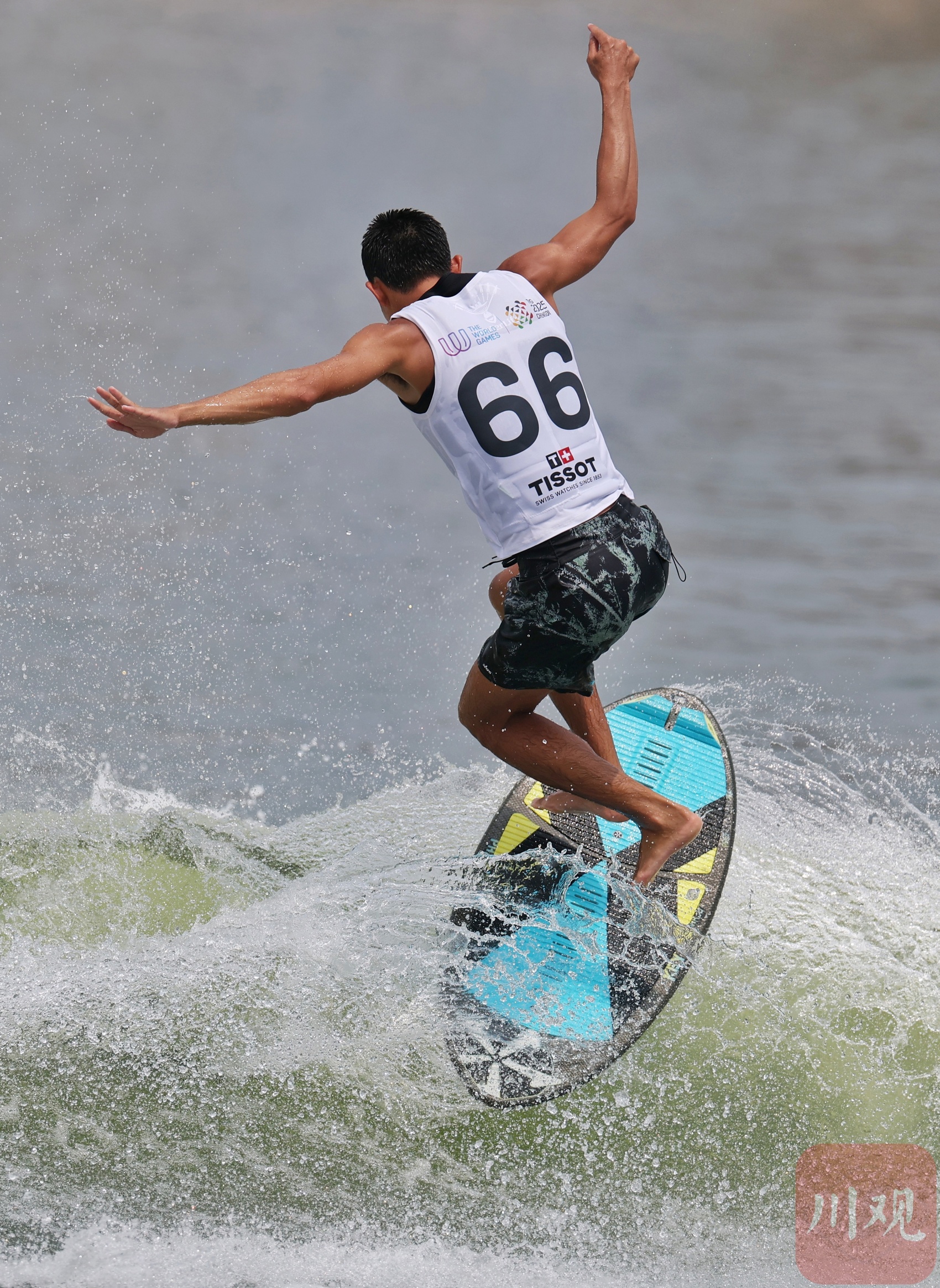 运动员踏板逐浪。