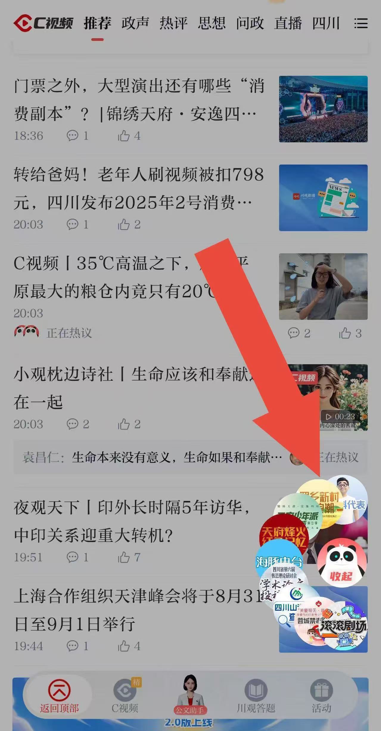 方式一:在川观新闻首页,点击右下方悬浮球,找到“蜀乡新村新浪潮”互动活动图片,点击进入;