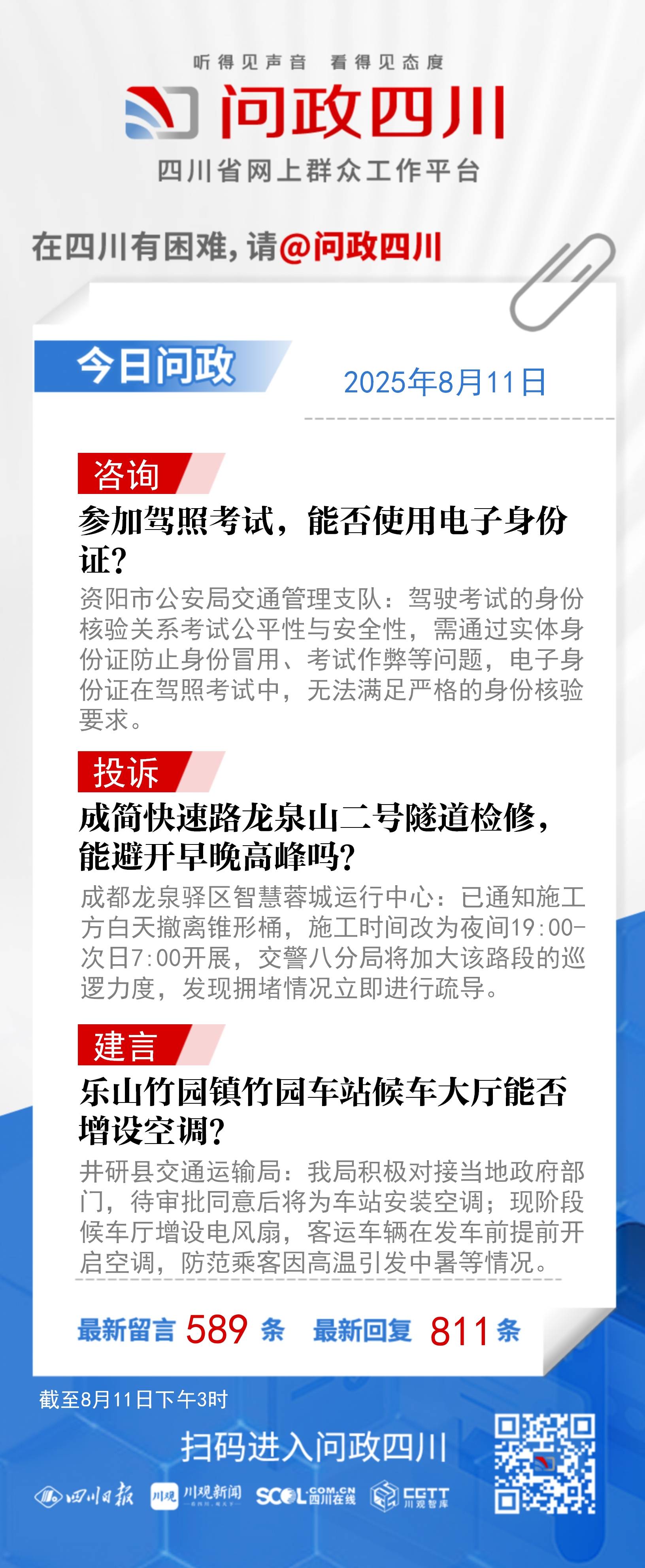 问政四川网友提问:我通过交管 12123App 预约驾照考试时,注意到预约界面的证件要求一栏明确标注为 “有效身份证件”,并未特别注明需携带 “身份证原件”。我按照对 “有效身份证件” 的理解,携带电子身份证前往考场。然而,工作人员却告知电子身份证不能作为考试凭证,导致我无法正常参加当天的考试。希望相关管理部门能进一步明确电子身份证能否在驾照考试中作为有效凭证使用,以便让考生提前做好准备,避免类似情况再次发生。