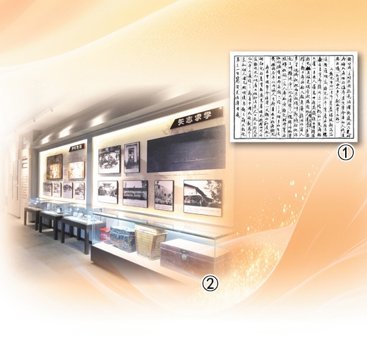 图①:刘伯坚家书(部分)。刘伯坚纪念馆供图;图②:刘伯坚纪念馆内景。人民日报记者 宋豪新 摄