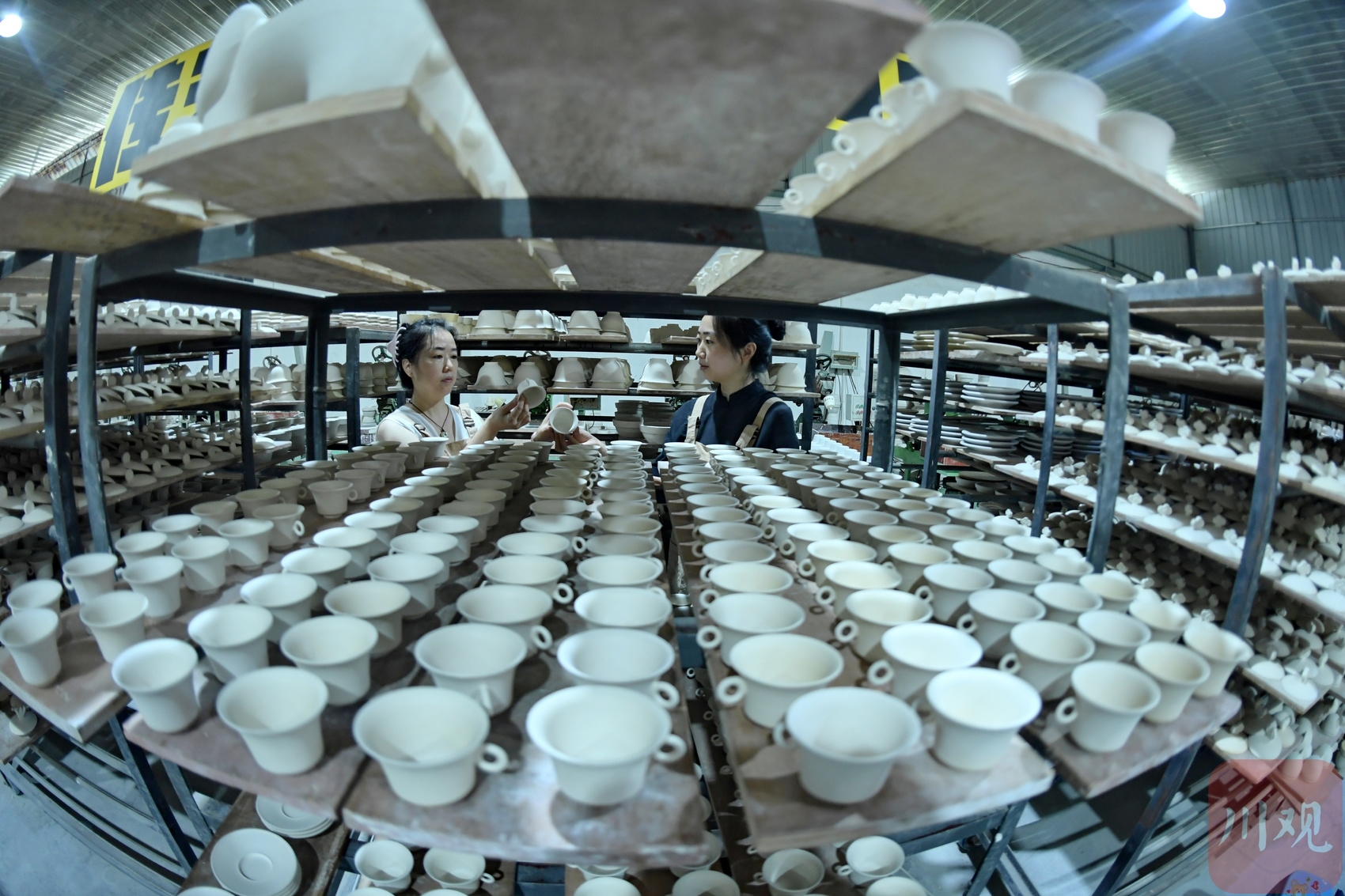 “从制泥、成型、修坯、补水、上釉、釉烧、烧制……一件陶瓷从最初的泥坯到最终的成品需要经过72道工序。”8月11日,在成都彭州白瓷艺术中心,工作人员一边忙碌检查泥胚是否变形一边告诉记者。
