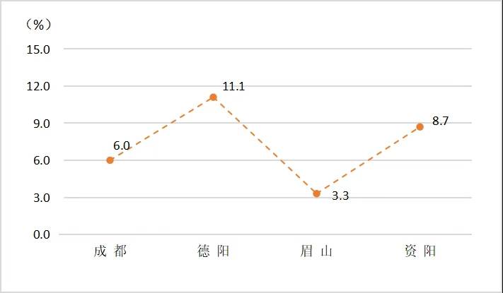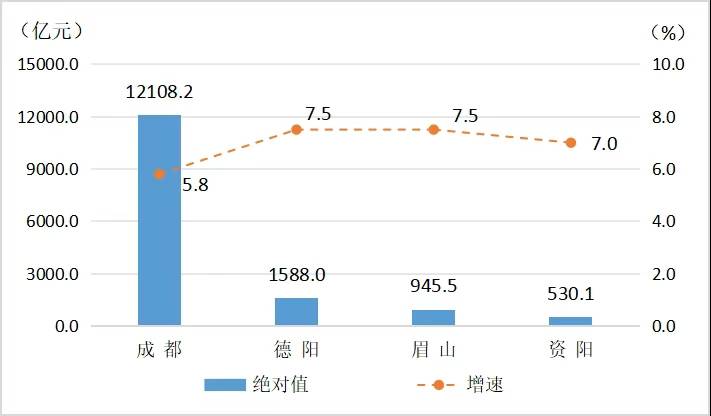 发展速度方面,成都以同比增速5.8%在全国“尖子生”PK中表现亮眼,位居9座“GDP两万亿城市”前列;德眉资三市经济保持高速增长,增速均进入全省前四,其中德眉两市同比增速并列全省第一,资阳7.0%排名第四。