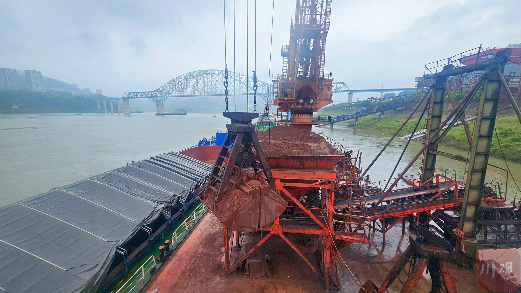 装载近万吨铁矿石的货轮运抵万州港。