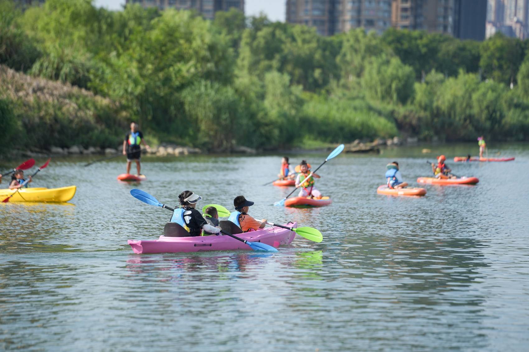 “世运热”同样传递到200公里外的嘉陵江畔。在南充市嘉陵区黄金江岸的江面上,一艘艘皮划艇、桨板、水上自行车,把世运会的热度划进市民和游客的生活中。
