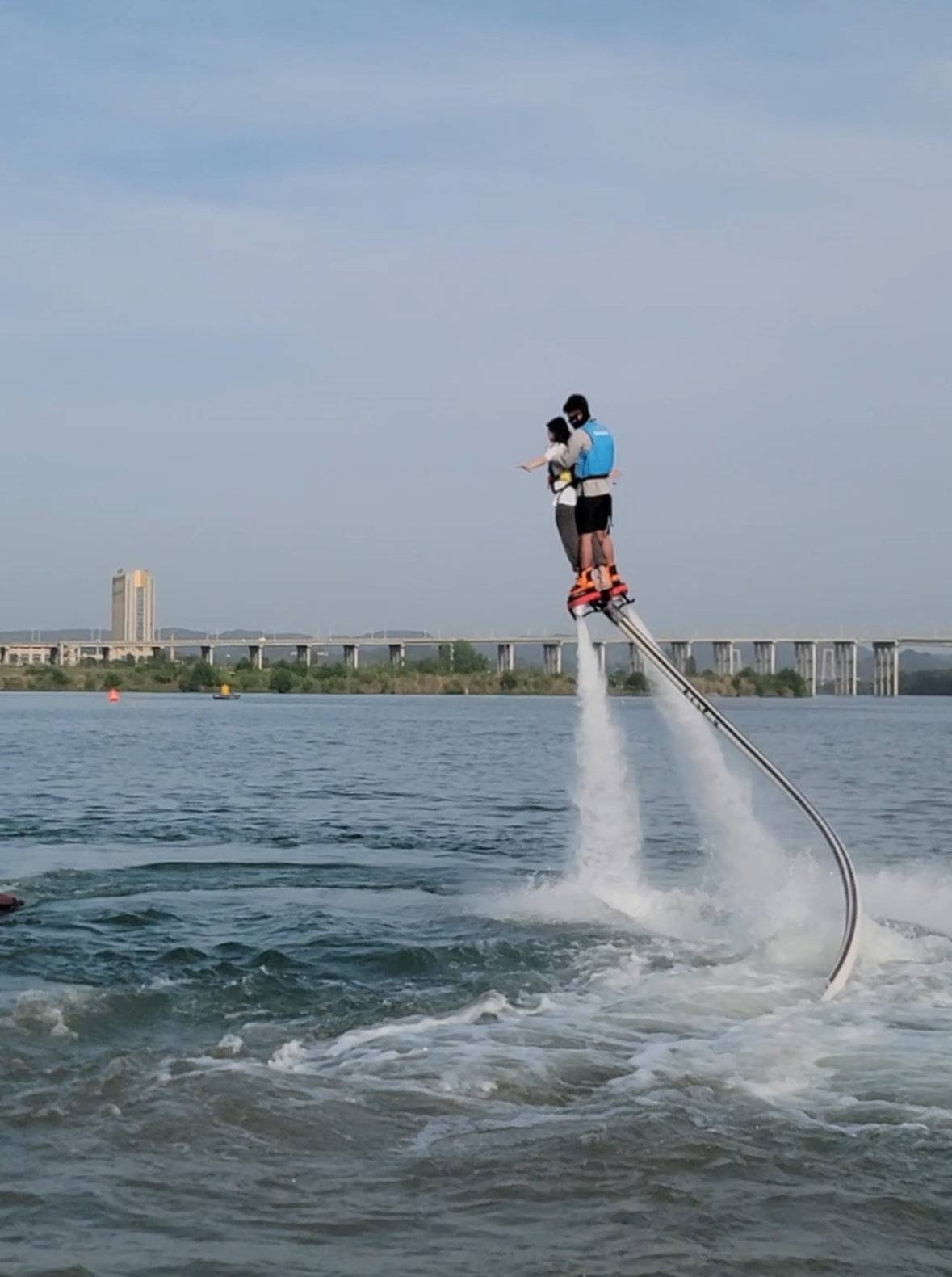 一旁的水上飞人体验区,在高压水柱喷射反作用力的推动下,市民张珊珊在家门口“过了把瘾”。“5分钟的体验简直没玩够,这种项目以前只能去三亚玩,没想到现在家门口的嘉陵江上就能感受飞跃空中的速度与激情。”张珊珊说。