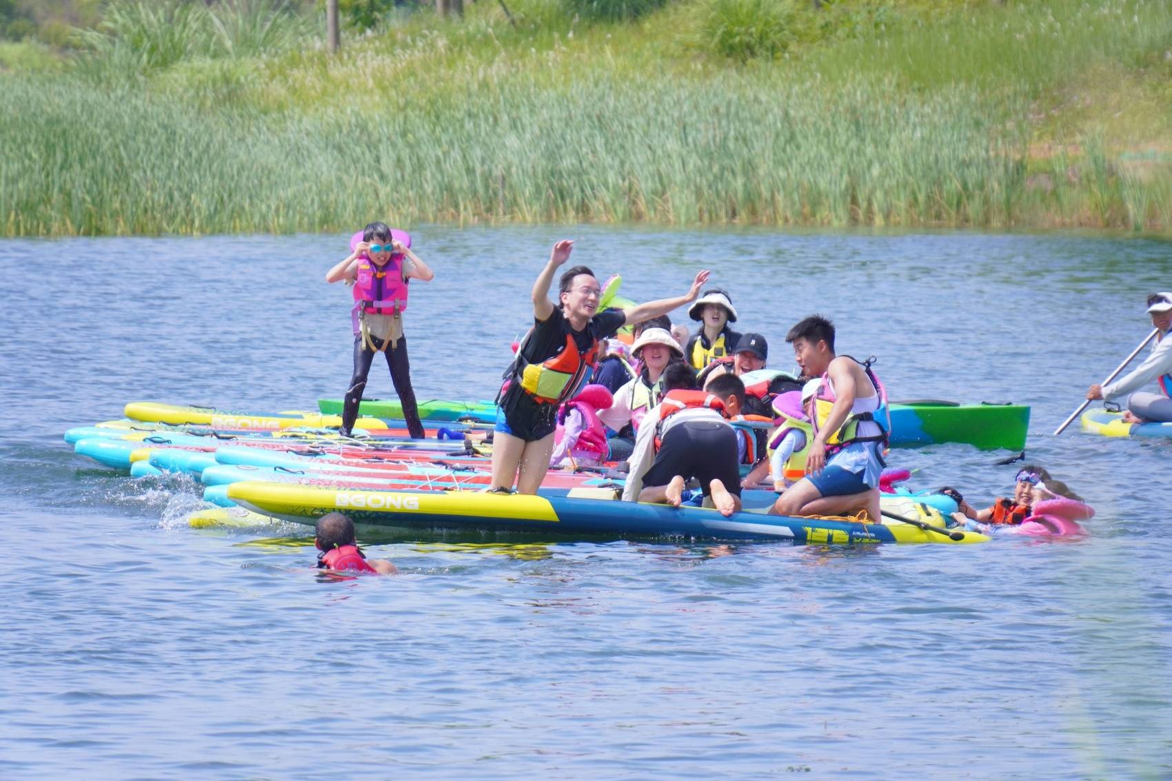 “孃孃,还要再等一会,皮划艇目前都已经放出去了。”8月13日下午6时许,黄金江岸水世界项目皮划艇检票区,负责人田皓正在为前来体验单人皮划艇的游客穿戴救生衣。“单人、双人皮划艇一共有20多艘,你看,全都在水面上。”田皓说,连日来南充持续高温,每到傍晚便迎来游客高峰,即便是工作日,一天也要接待一两百名游客。
