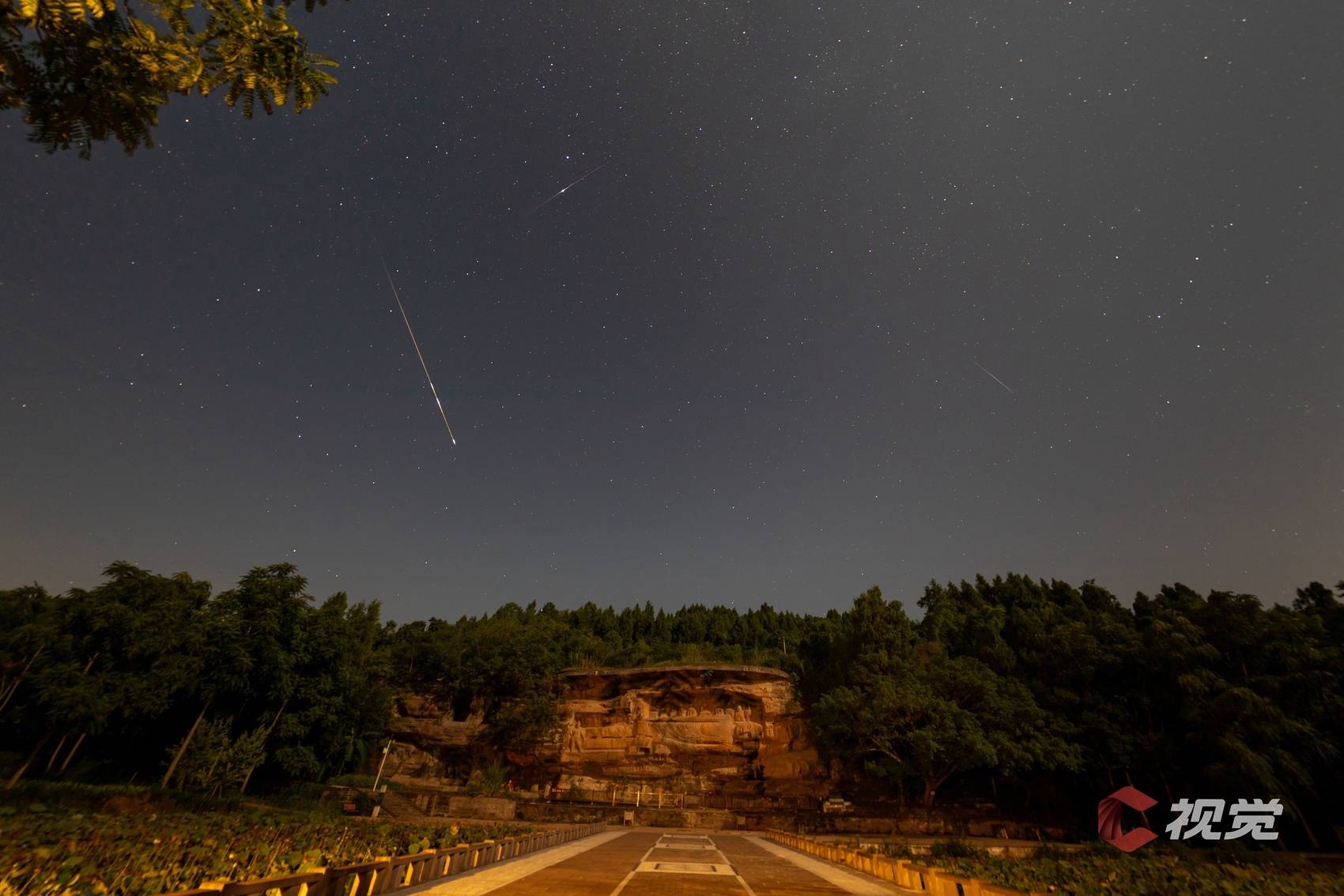 8月12日晚,资阳安岳县卧佛院摩崖造像的上空星河璀璨,流星倏忽划过,惊艳整个夜空。C视觉签约摄影师 童福艳