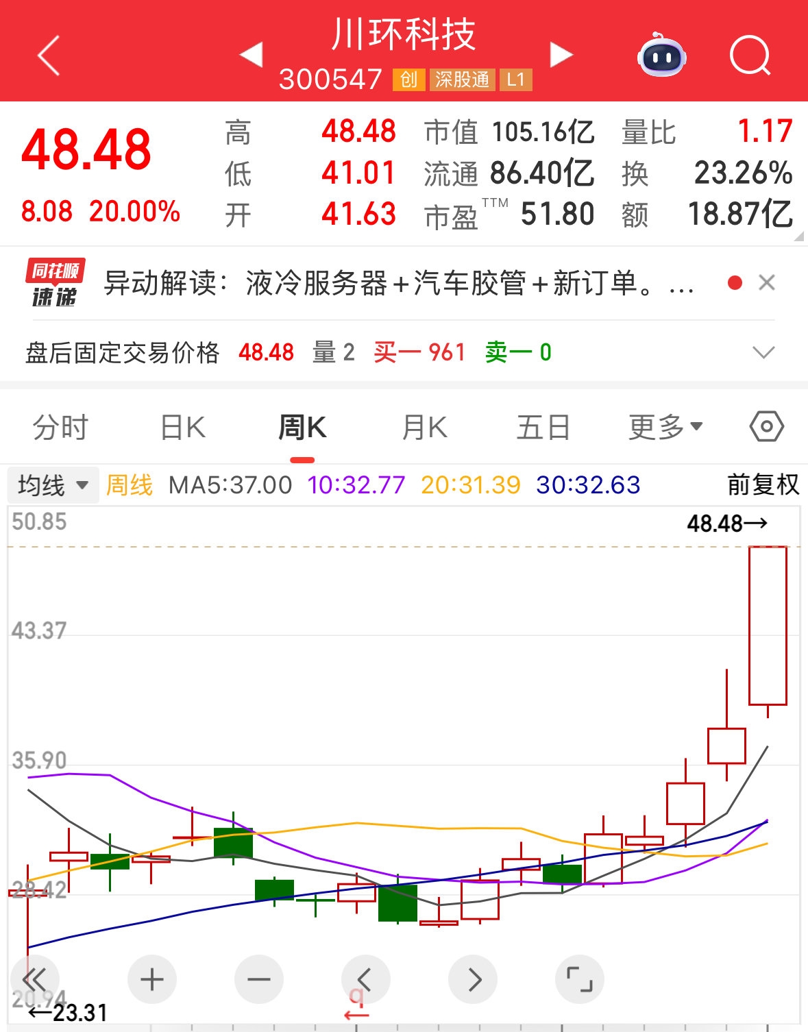 此外,液冷服务器概念板块今日“一飞冲天”。根据同花顺数据,该板块涨幅超过5%的股票一度达到38只,其中有15只股票一度涨停或涨幅超过10%。大元泵业收获5个涨停板;板块的“领头羊”川股川环科技早盘就已实现“20cm”涨停。从周线来看,川环科技已连涨五周。除了受液冷服务器概念板块影响外,川环科技的涨势与其11日发布的2025年半年报也息息相关。对于市场关心的液冷业务,川环科技在半年报中更新了进展——公司对某液冷服务器公司使用的冷却系统管路产品已经研发成功,并经客户验证合格,报告期有批量供货。这无疑增强了投资者对于该股的信心。