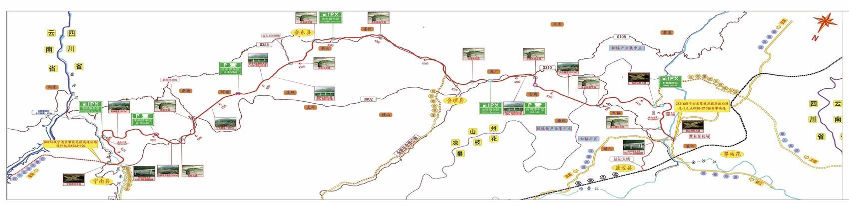 宜攀高速宁攀段起于凉山州宁南县城南,经宁南县、会东县、会理市、盐边县,止于攀枝花市仁和区,项目全长166.167公里。2024年底,宜攀高速宁攀段起点至新街互通、会东北互通至止点金江枢纽互通共138公里建成通车,结束了宁南、会东、会理不通高速公路的历史。今年年底宁攀段实现全线建成通车后,宁南县至攀枝花市通行时长将由5小时缩减至2小时。