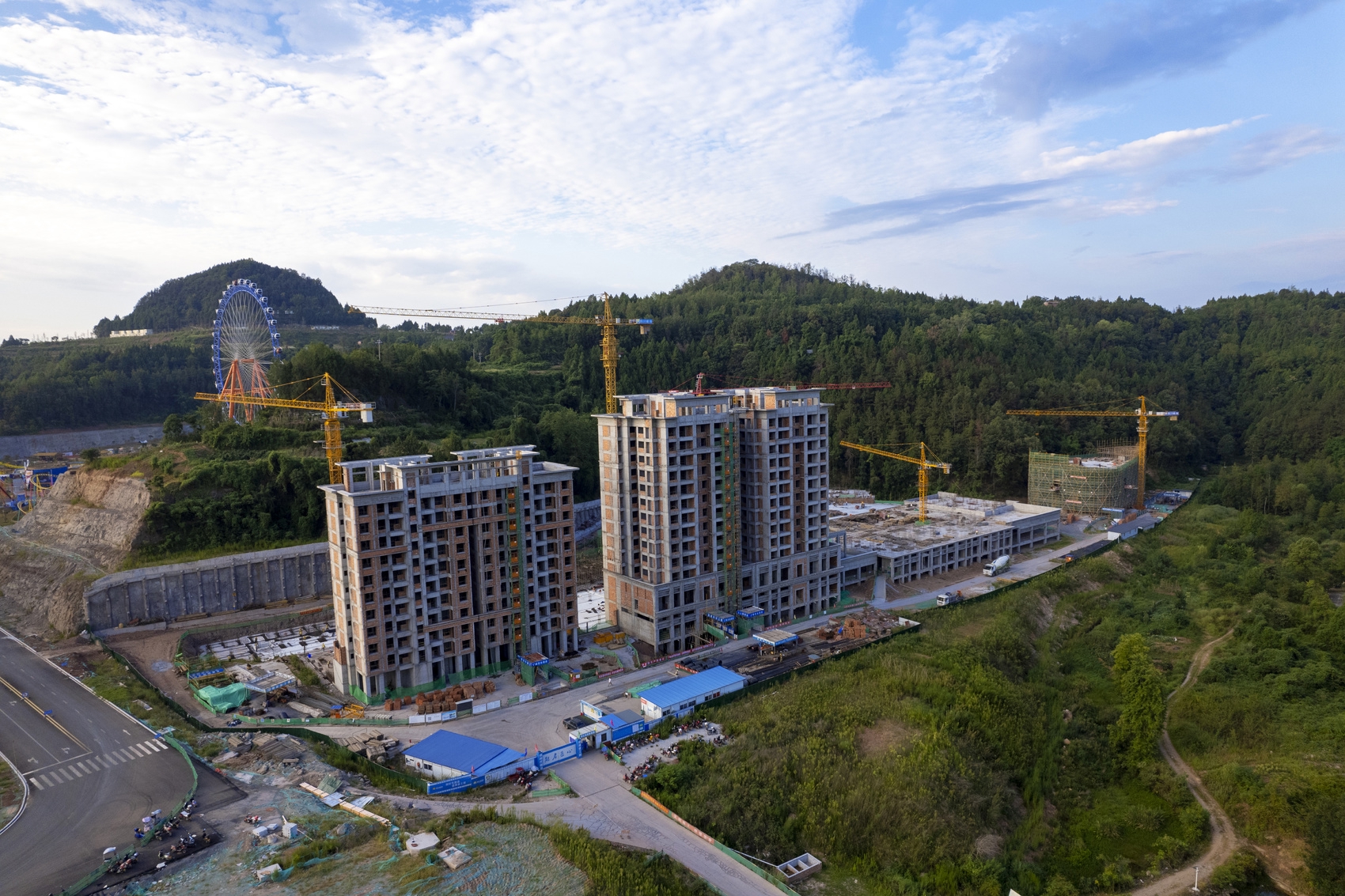 8月15日,巴州区莲山湖安置房项目建筑主体已基本完工,正进行外墙装饰、内部水电线路铺设以及门窗安装等工作。(何雨隆 摄)