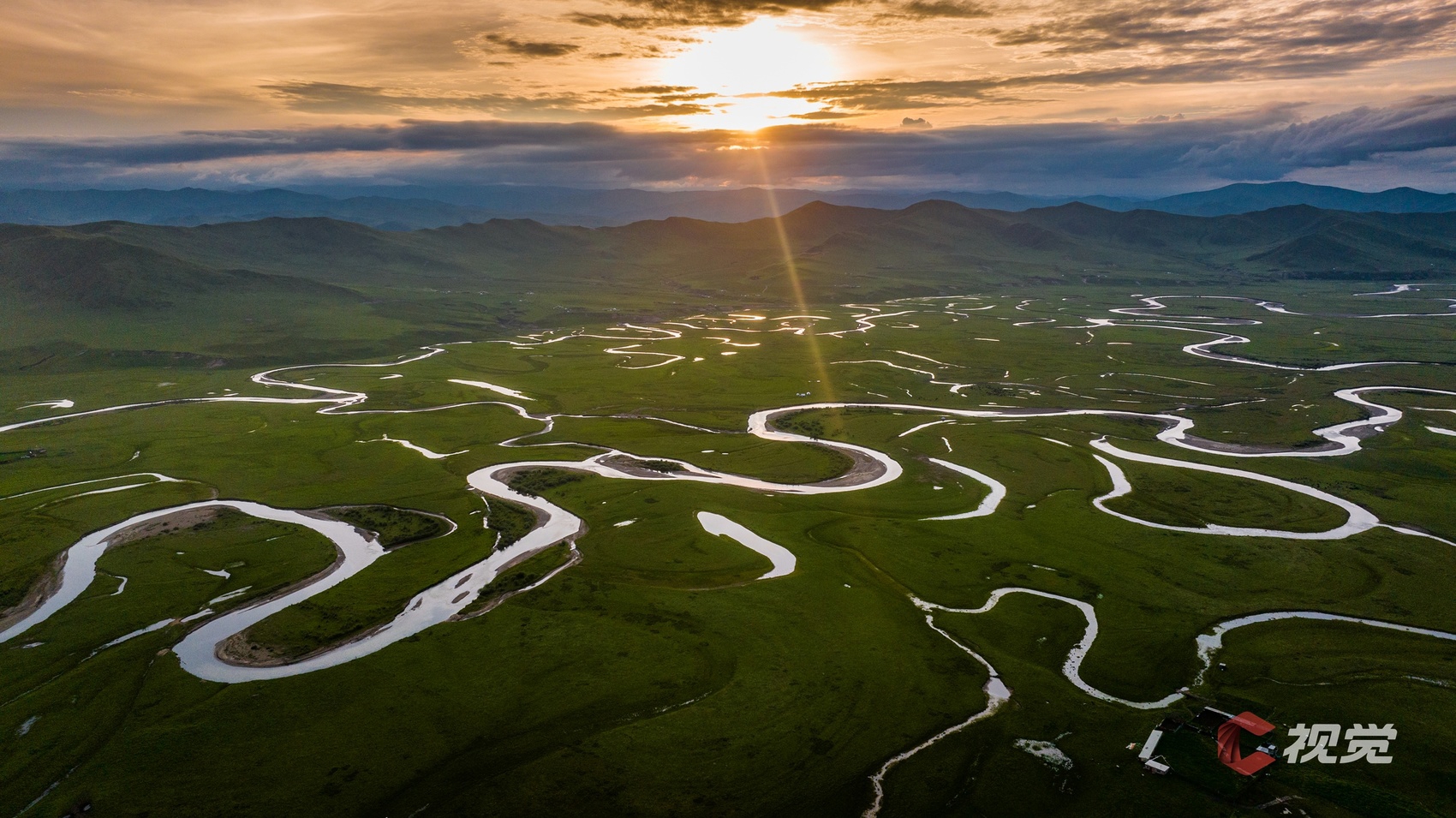 2025年8月4日,阿坝县曼扎塘千弯湿地在彩霞满天,霞光把湿地的水面渲染的波光粼粼,如梦如幻。C视觉签约摄影师 李旭