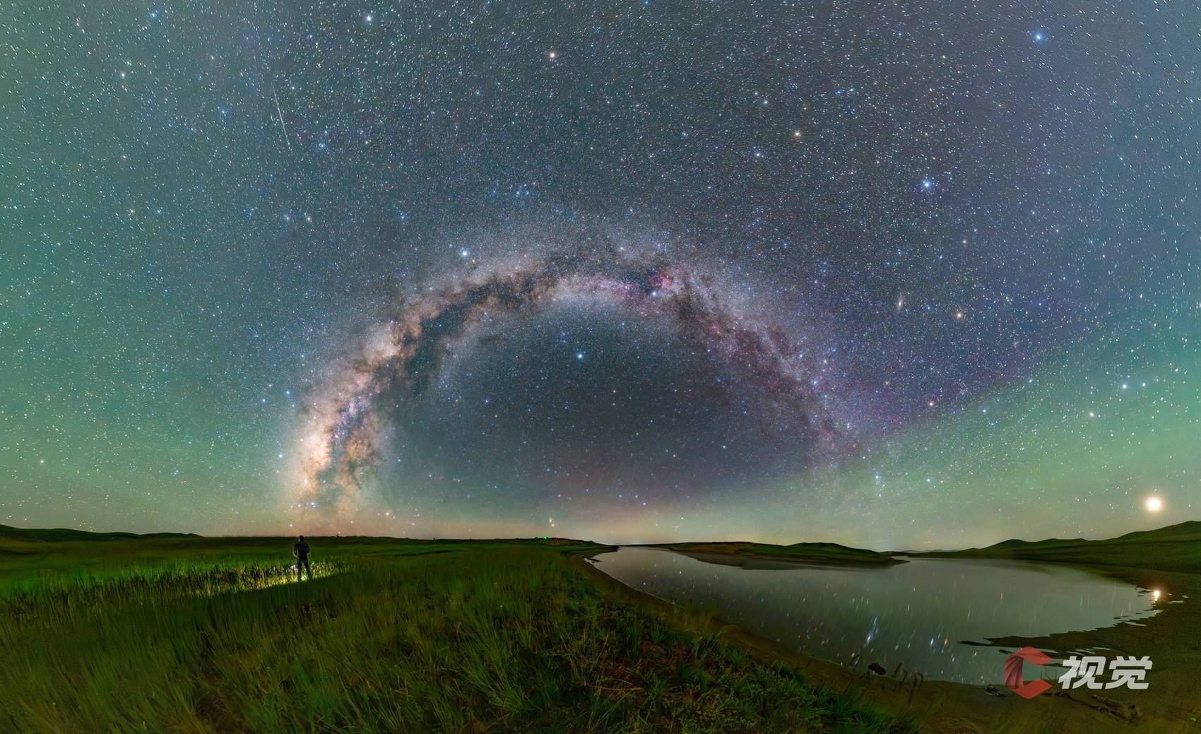 2023年8月13日,夏日夜晚的阿坝若尔盖墨曲河畔,银河犹如拱桥横跨天际。C视觉签约摄影师 杨友利