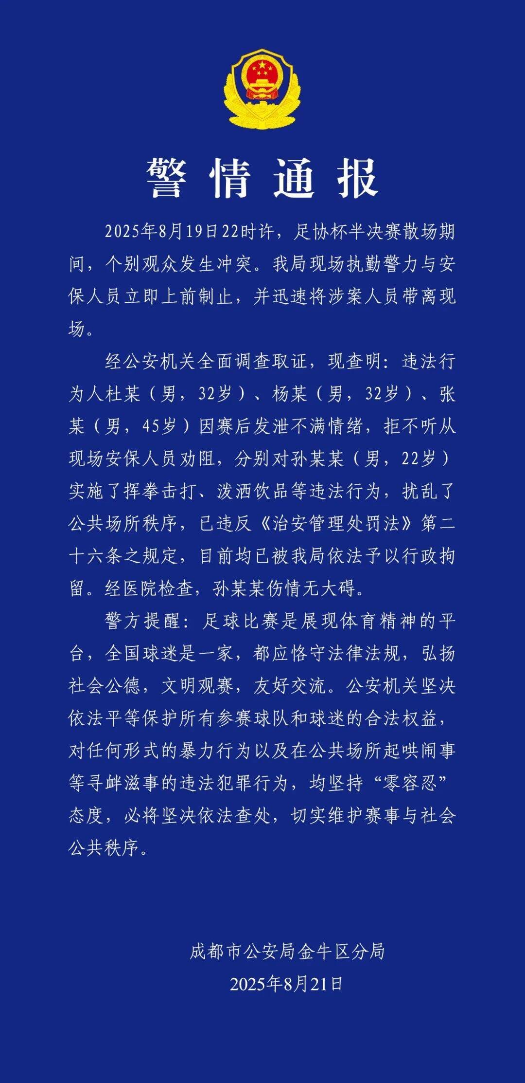球赛后发泄不满情绪实施违法行为,3人被行拘