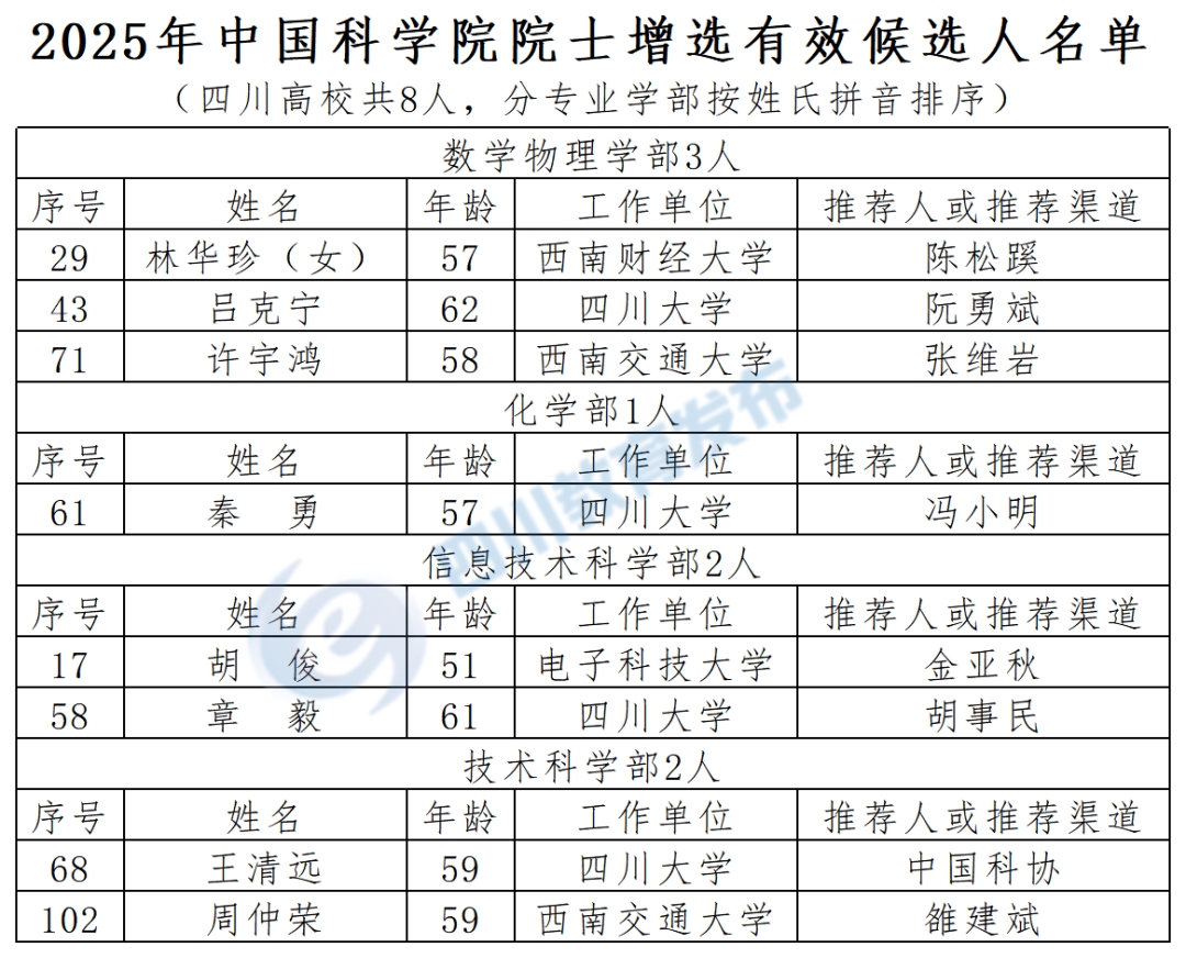 关于公布2025年中国科学院院士增选有效候选人名单的公告