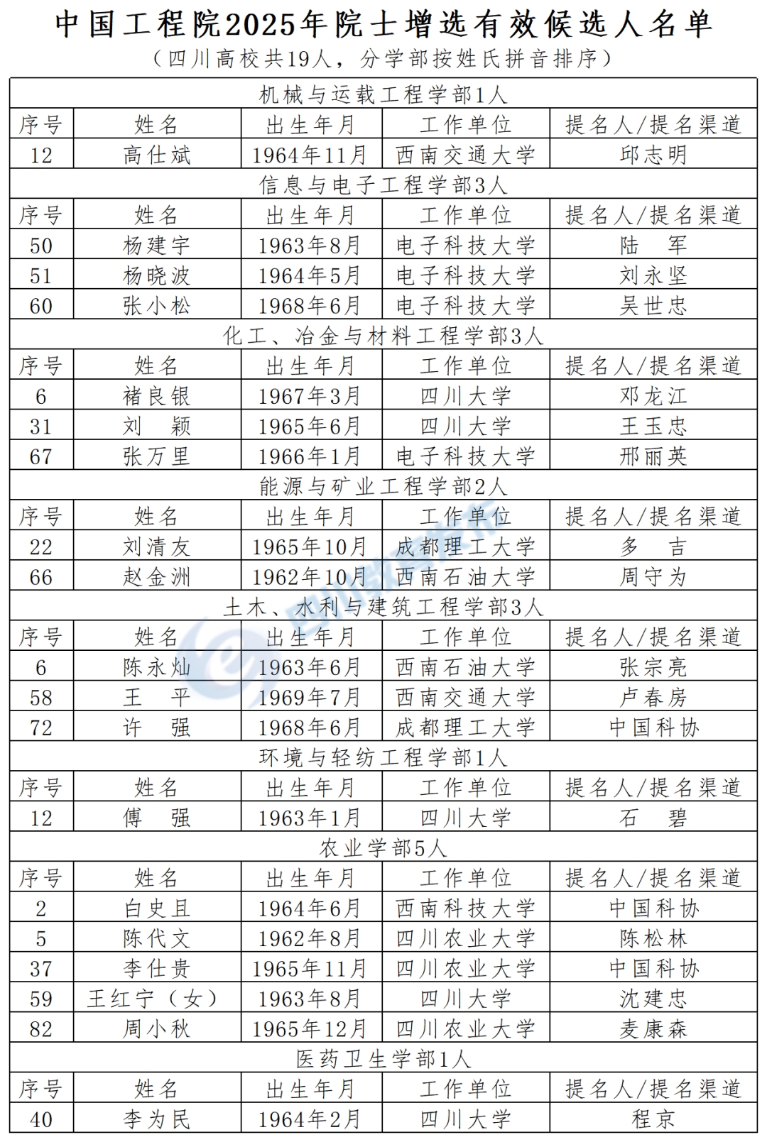 关于公布中国工程院2025年院士增选有效候选人名单的公告