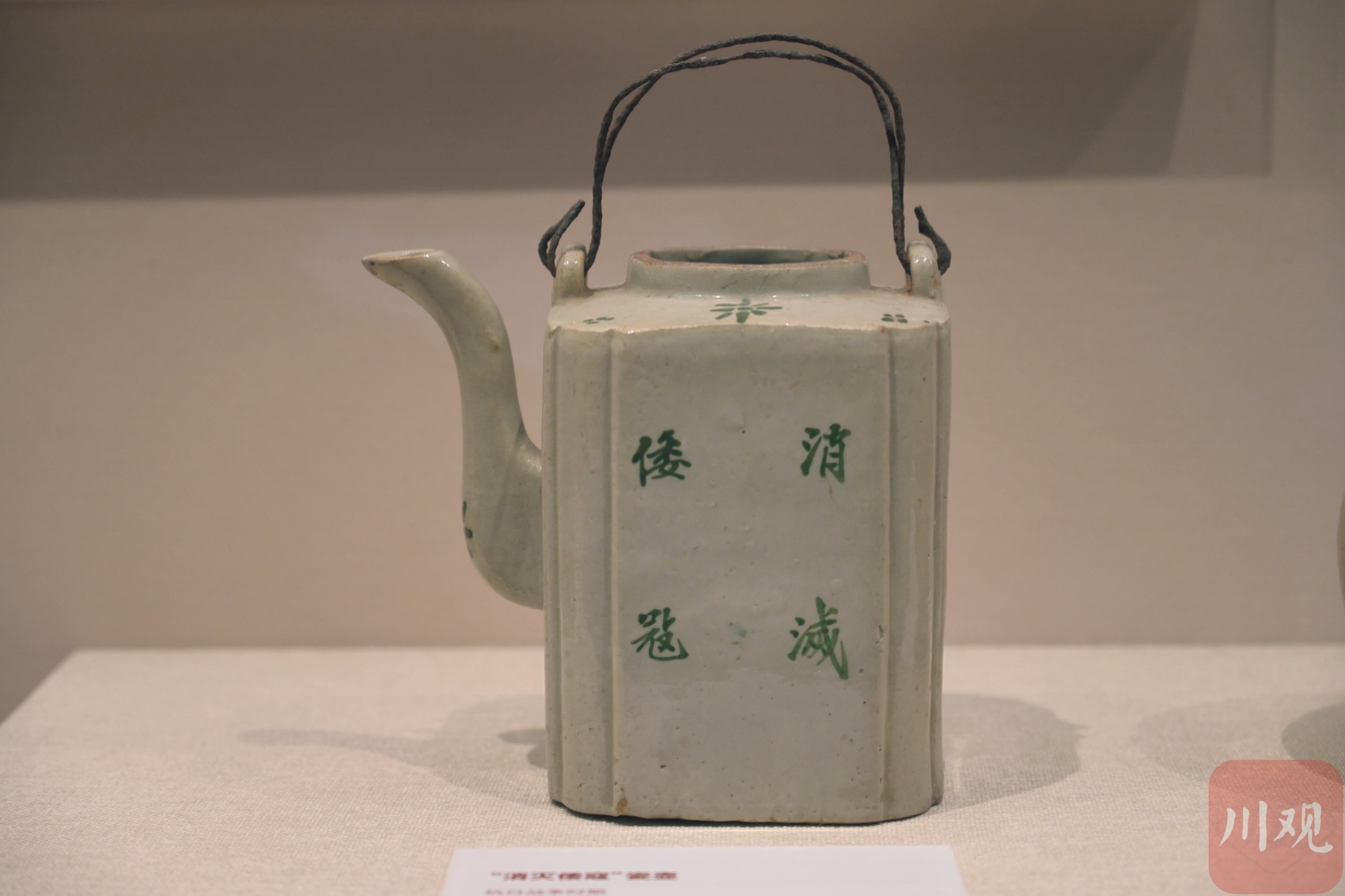 有“消灭倭寇”字样的瓷壶。重庆中国三峡博物馆藏
