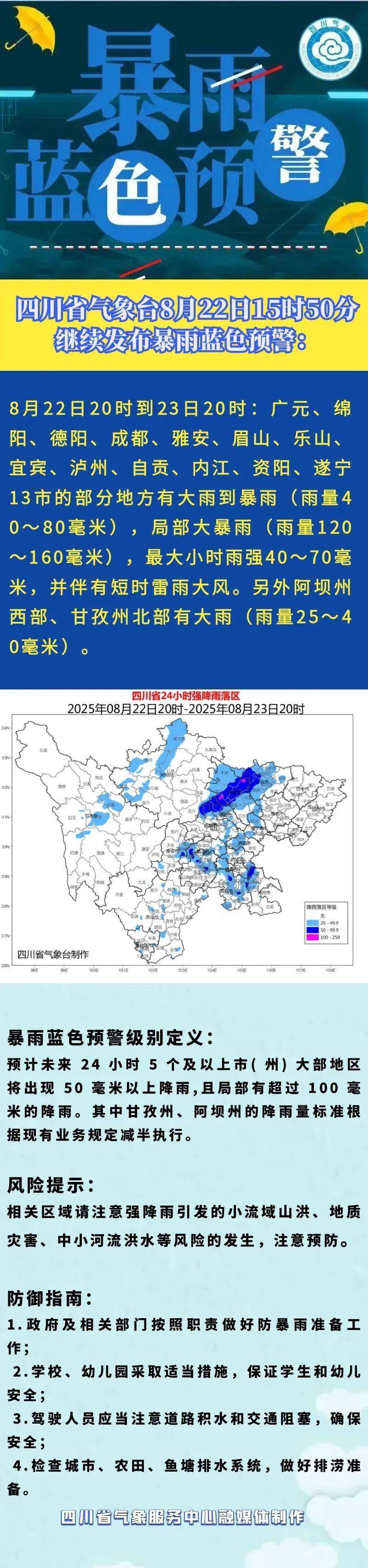 局部大暴雨!四川继续发布暴雨蓝色预警