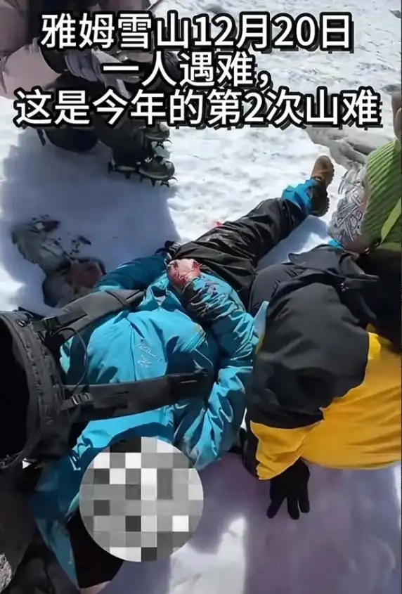 图为2024年12月雅姆雪山一登山者滑坠遇难。 图据网络