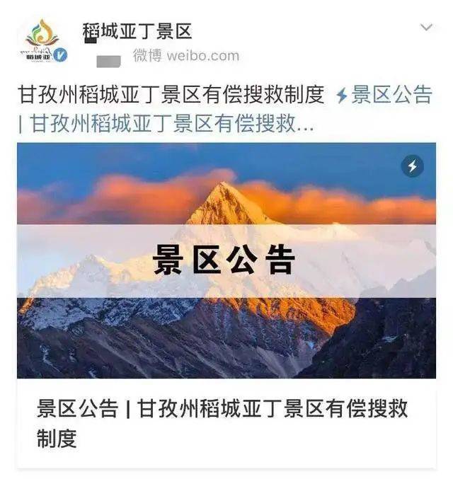 2014年,稻城亚丁景区成为国内首个实行有偿搜救制度的大型景区。 图据网络