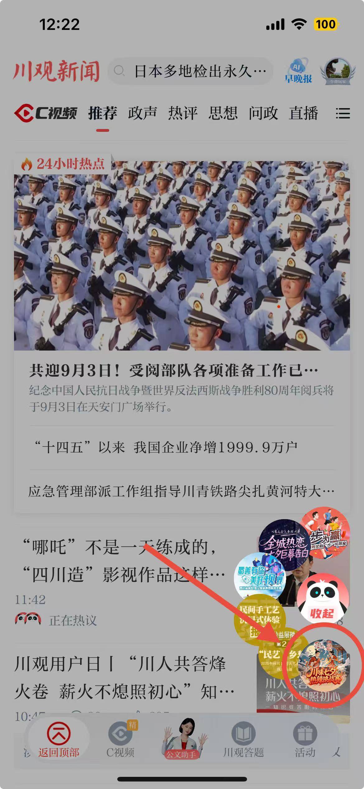 方式一:在川观新闻首页,点击右下方悬浮球,找到“川味七夕”活动图片,点击即可参与;