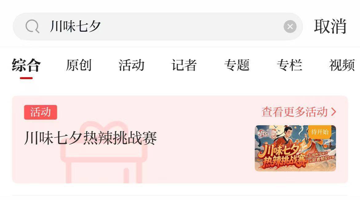 方式四:在川观新闻首页顶部搜索框输入“川味七夕”,点击活动链接即可参与。