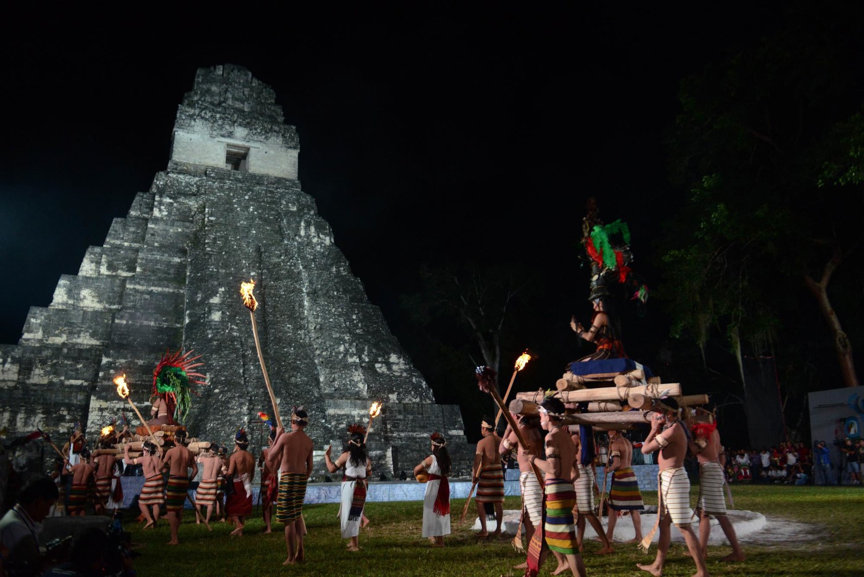 2012年12月20日,人们在危地马拉佩滕省蒂卡尔考古遗址参加仪式迎接玛雅新纪元。图据新华社/法新