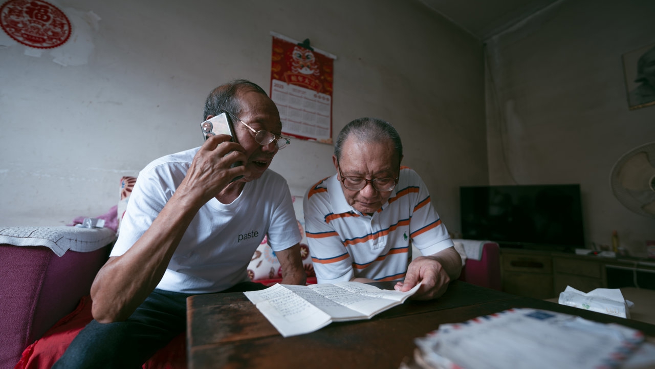 2025年7月8日下午14时许,成都市双流区九江街道柑龙路152号的老屋里,一通跨越海峡两岸的电话里,80岁的周安才用微颤的手指着一封家书,对着手机念。不时,他推一推老花镜儿,仔细辨认后再断断续续地念。偶尔,他会停下来问,“邦珍,你听得见吗?”