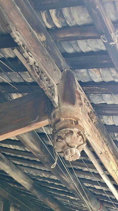 周文富老宅,房梁上,锤花柱的花纹依旧清晰可见(丁平摄)