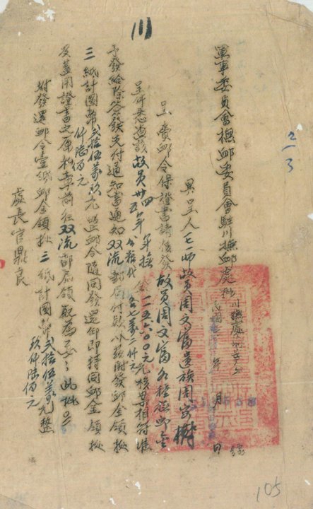 军事委员会抚恤委员会驻川抚恤处为请核发故员周文富各种抚恤金由批示(双流区档案馆供图)