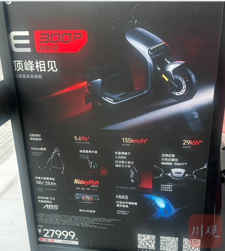 价值27999元的“九号”E300P MK2电动车。