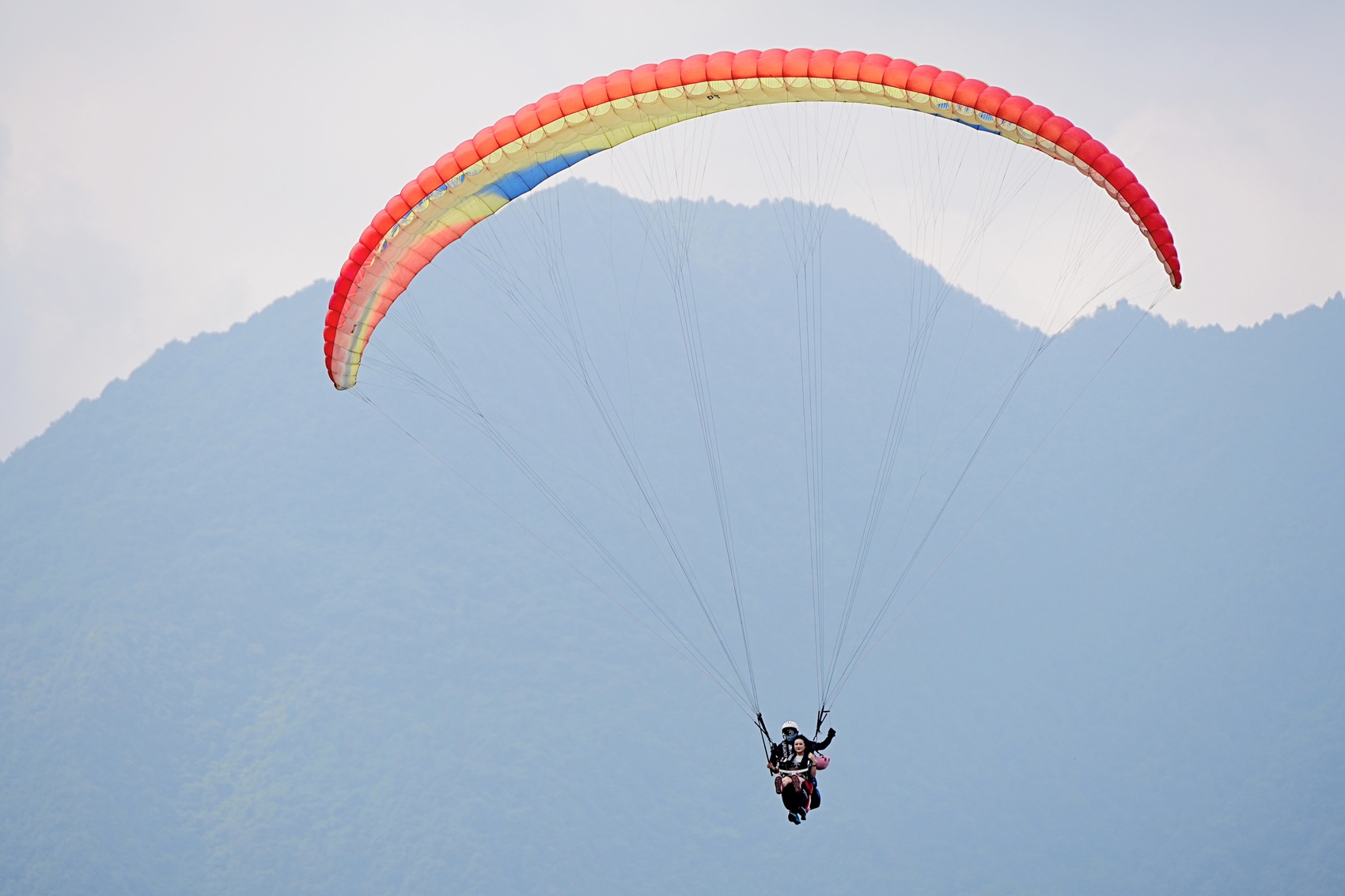 游客在瓦屋山滑翔伞飞行营地体验低空飞翔。(洪雅县文广旅局供图)