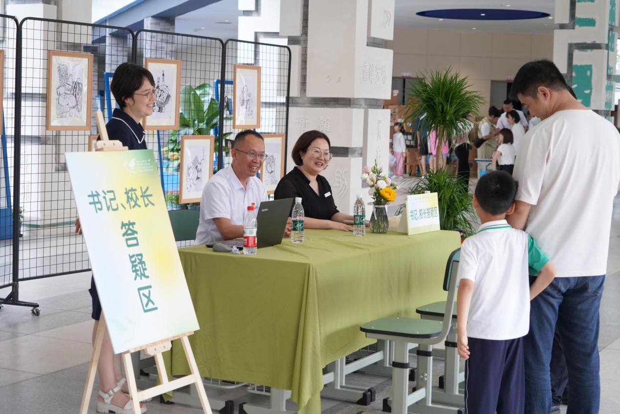 走进四川师范大学附属青台山小学B区和中学B区的开放日现场,学校老师们带着家长和学生们参观校园后,也对师资情况进行了一对一解答。并且,这所学校的小学B区学校还设置“书记校长答疑区”,为家长进一步答疑解惑。