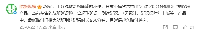 官网称:暂未推出“延误20分钟即赔付”的保险产品,当前在售的航班延误险最低赔付门槛为航班到达延误时长≥30分钟,且延误越久赔付越高。对此,多名网友表示,20分钟只是当天的“惊喜数字”,官方避重就轻,不知是刻意回避问题还是对自己平台的活动根本不清楚。